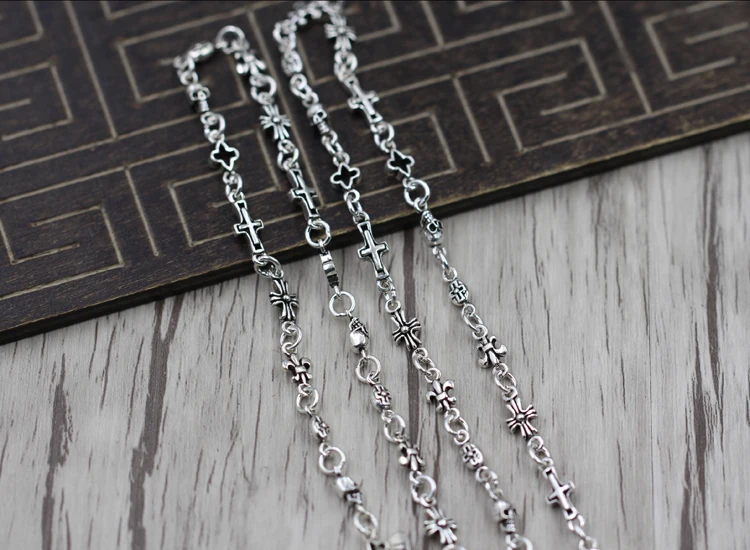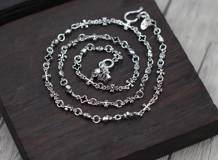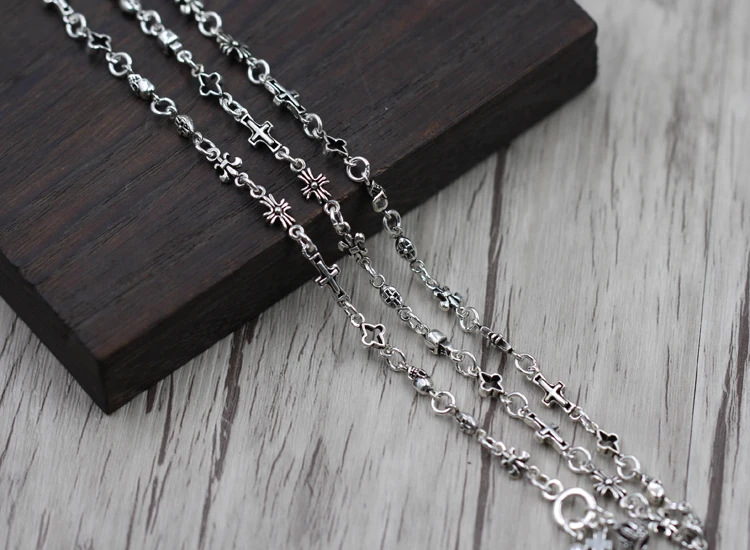 Collana in argento sterling Personalità semplice collana scheletro croce paragrafo selvaggio Catena di maglione stile coppia classica Invia regalo