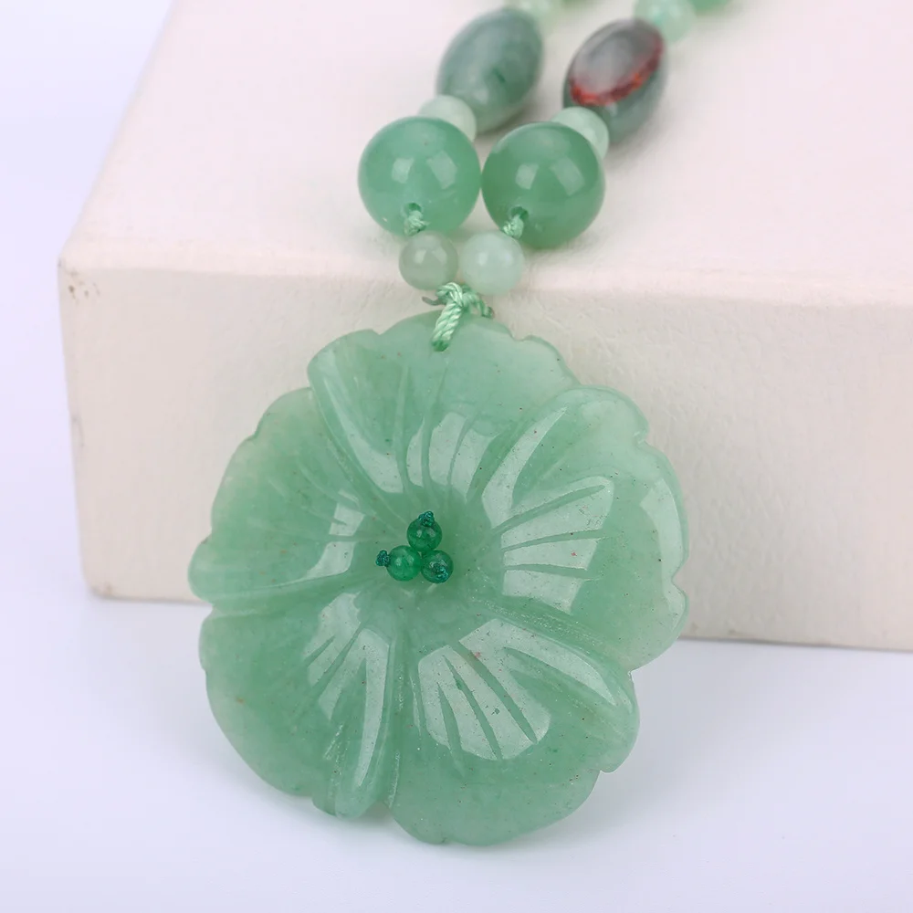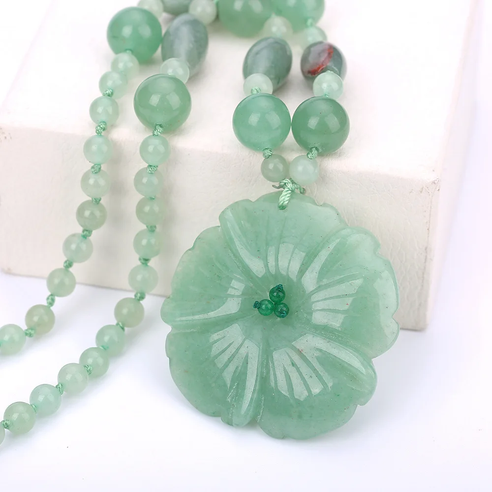 Collana in pietra naturale Arcobaleno Fiori semplici Collana in cristallo Ciondolo Donna Collana in giada verde smeraldo Cristallo onice regalo da 48 cm