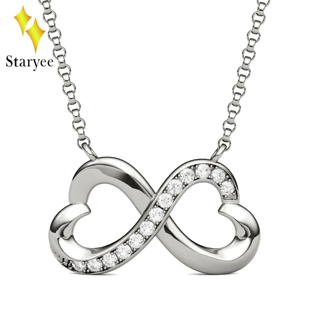 Test Positive Forever One Charles Colvard 0.12CTW Round Cut Moissanite Infinity Heart Necklace with Real 18K Solid Rose Gold