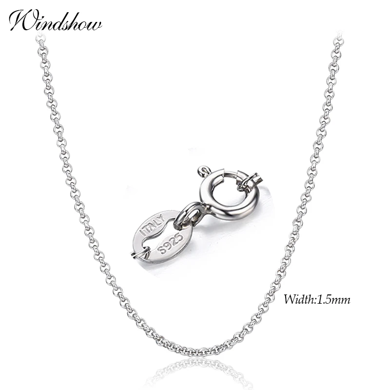 35-70cm 925 Sterling Silver Circle Rolo Chain Necklace Women Girl Italy Jewelry kolye collares collane collier ketting sieraden