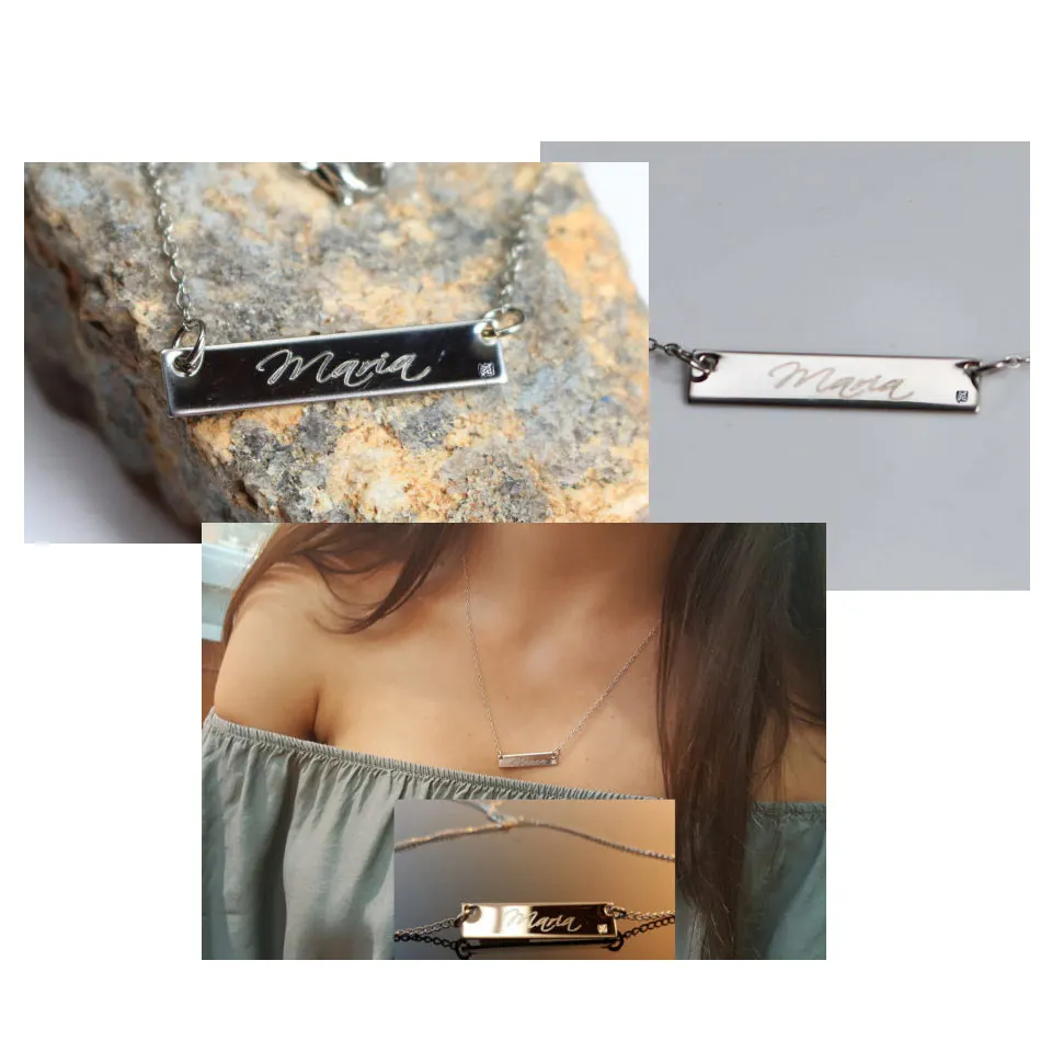 Genuine 925 Sterling Silver Custom Name Bar Necklaces Pendants For Women Love Party Personalized Gift Fine Jewelry