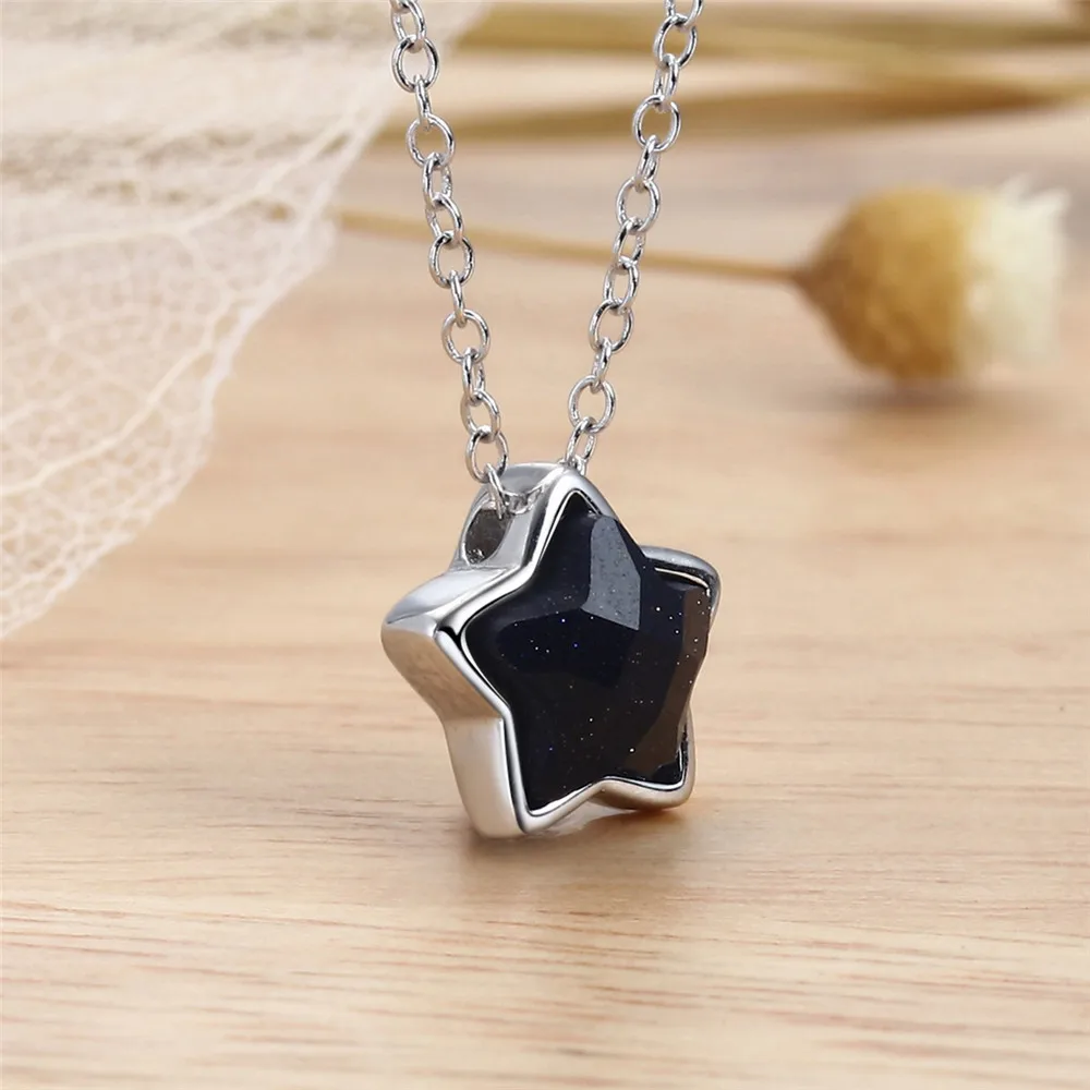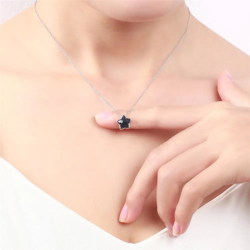Collana a catena con ciondoli semplici a stella delicata in argento sterling 925 con pietra dorata per gioielli da donna