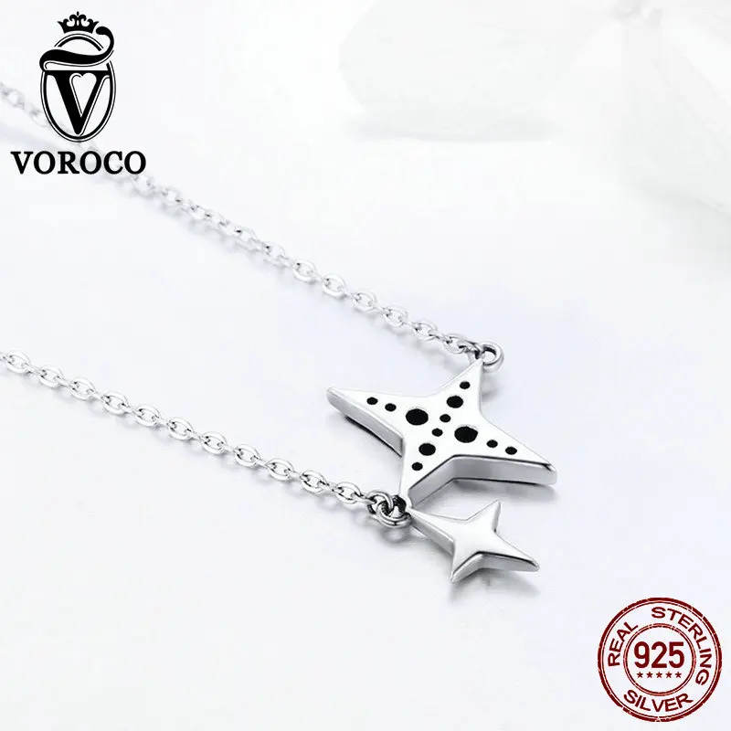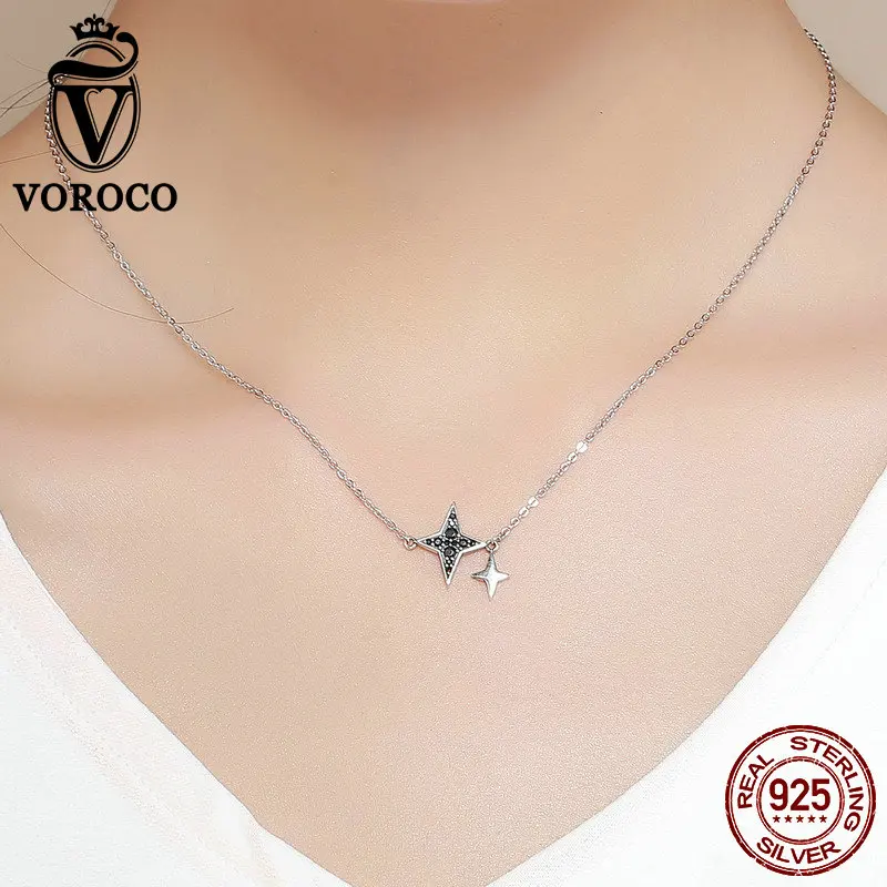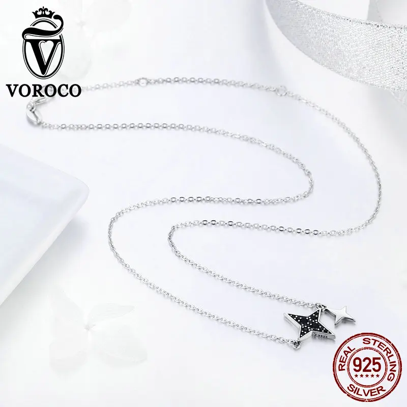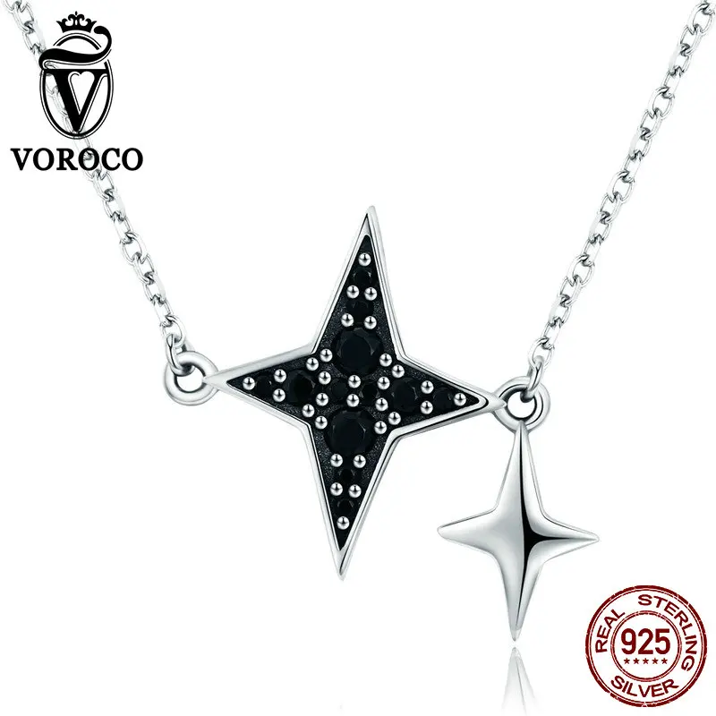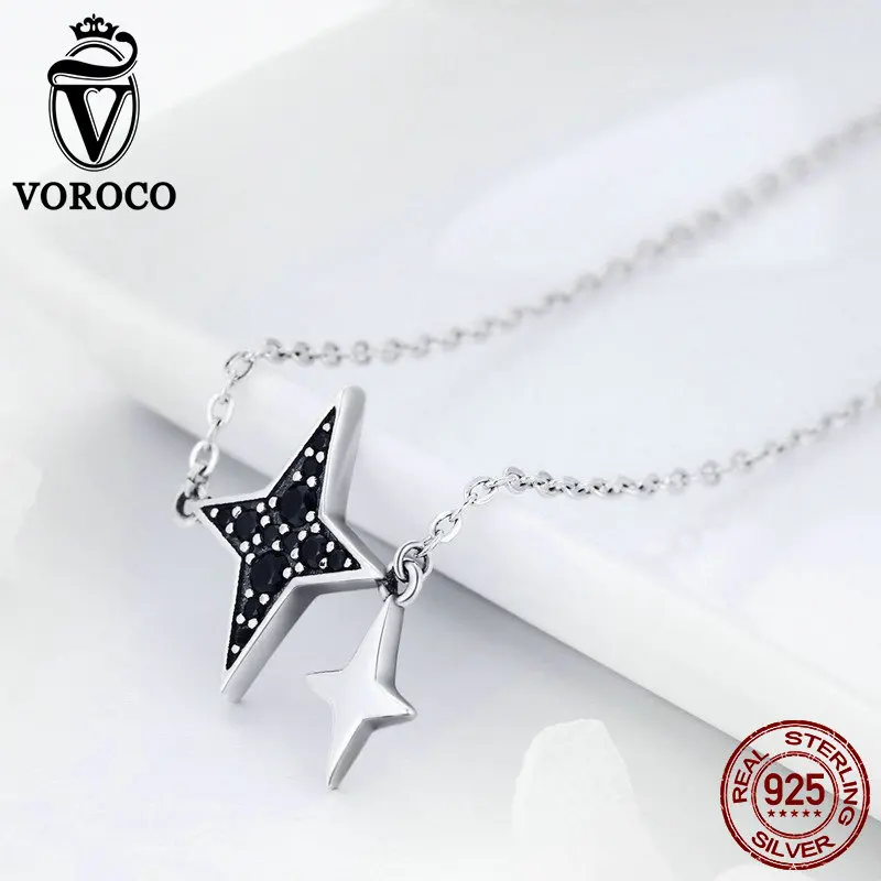 Real 925 Sterling Silver Pendant Sparkling Black CZ Star Silver Necklace For Woman Party Anniversary Fine Jewelry BKN234