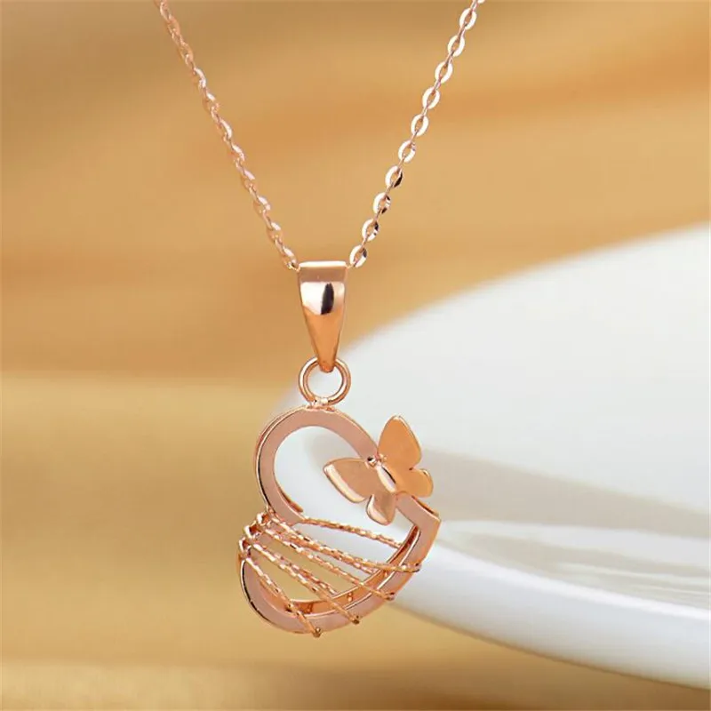 Wholesale 18K Gold Pendant AU750 18K Gold Jewelry Butterfly Heart Pendants Necklace For Women/Men + Link Chain