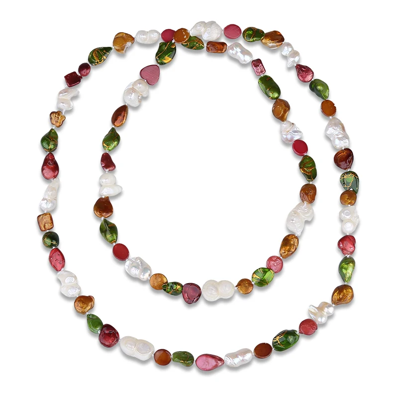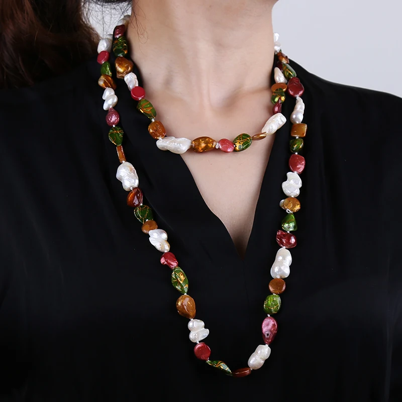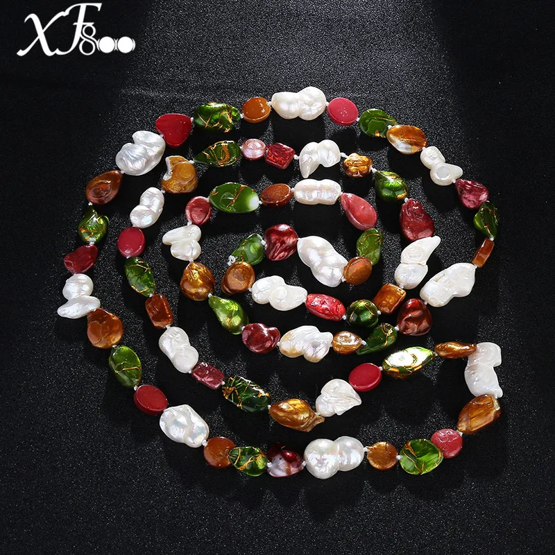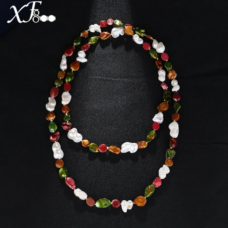 [XF800]Baroque Pearl Necklace Pearl Jewelry Natural Irregular Pearl 2 Rows Long New Trendy For Party Bohemia [X219]