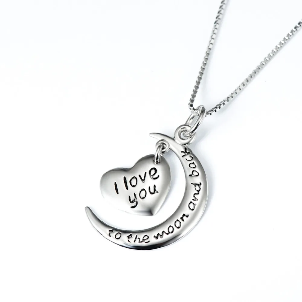 Gioielli in argento sterling 925 Ti amo alla luna e ritorno Collana con ciondolo a forma di cuore e luna per donna