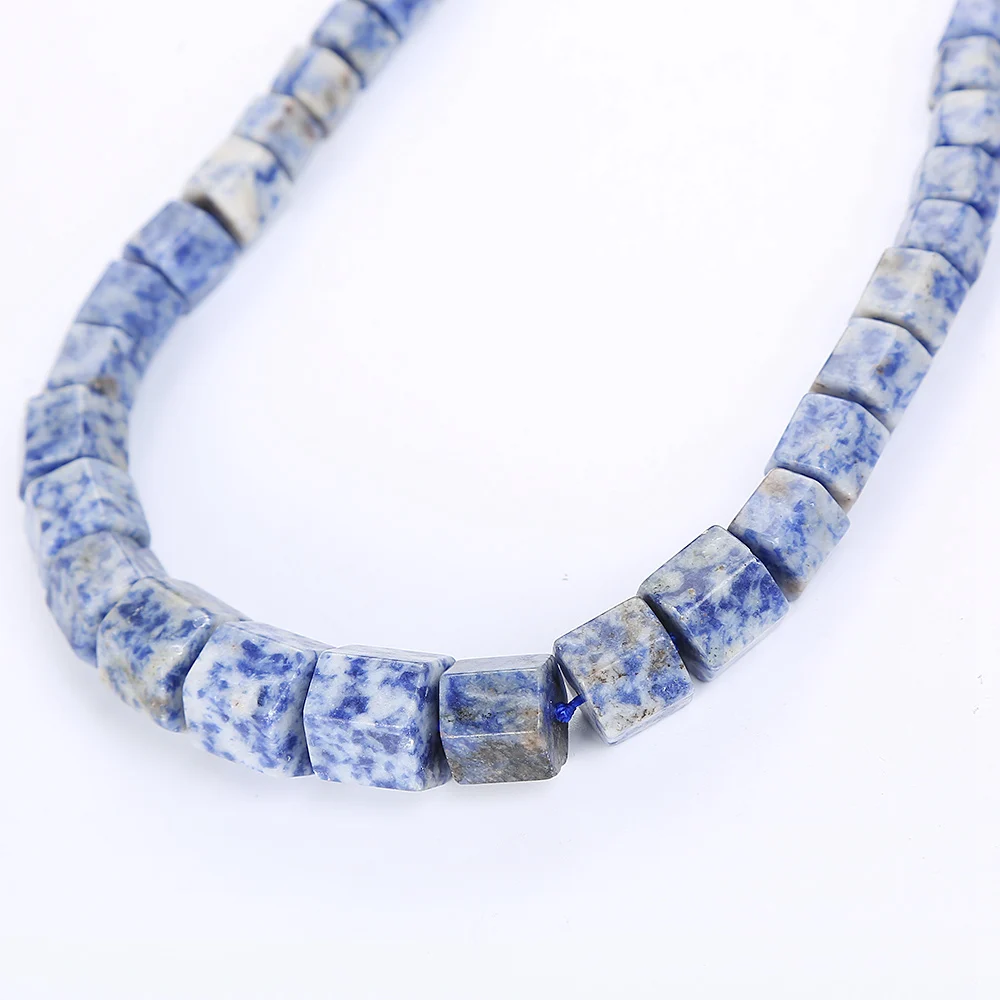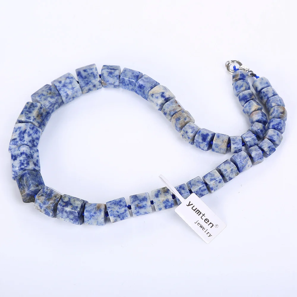 Blue Veinstone Choker Necklace Men Magnesite Square Diamond Statement Stone Gemstone Power Crystal Male Fine Jewelry Gift