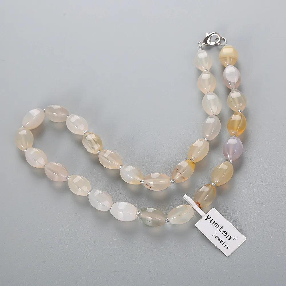 Natural Chalcedony Necklace Hyperbole Female Short Chain Geometric Crystal Power Accessories Engagement Rolo Chain Couple
