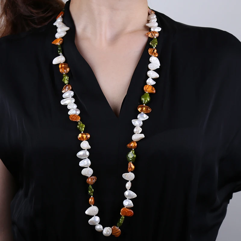 Collana di perle barocche Gioielleria raffinata Collana di perle lunghe naturali Nuova moda Regalo di anniversario Boemia [X218]