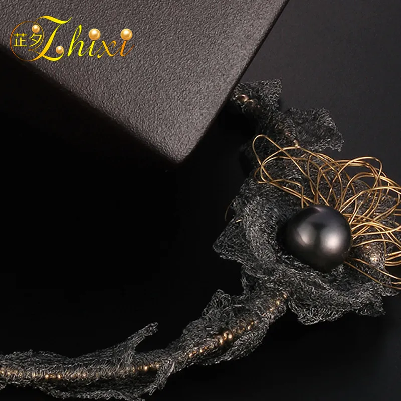 Collana girocollo con perle nere di Tahiti per le donne Gioielleria raffinata Perle di mare naturali di lusso Torque 2018 Nuovo regalo per feste EB80