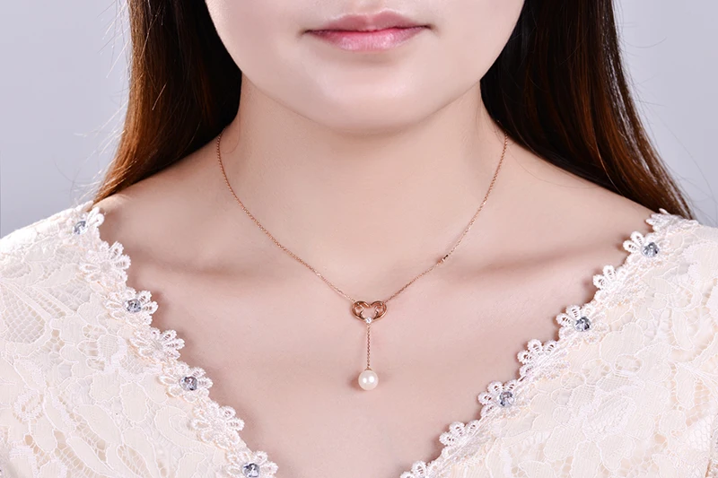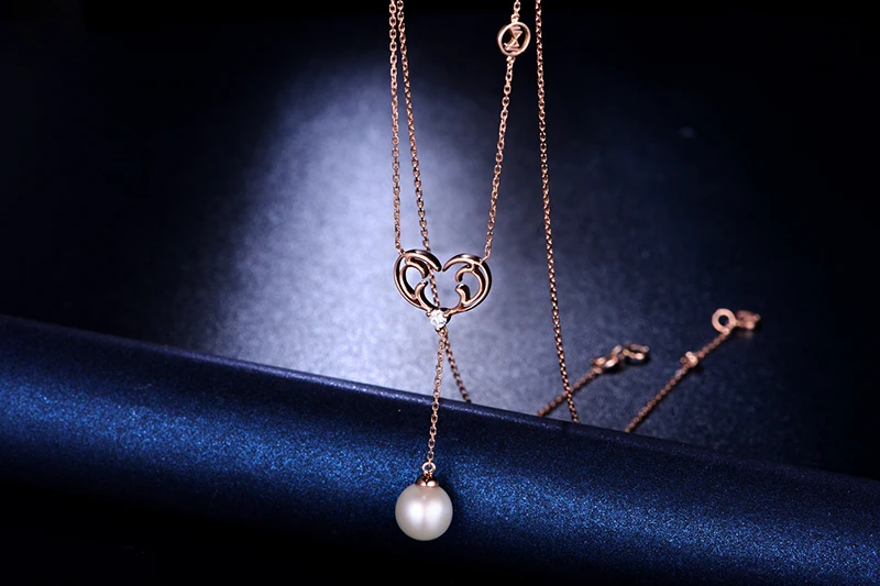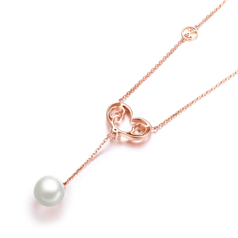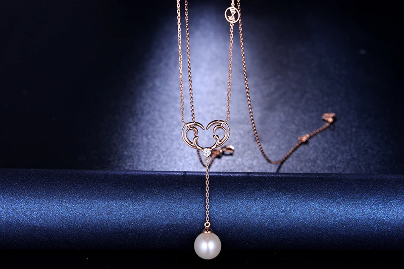 Choker The Christmas Reindeer Real 18K Rose Gold Real 0.07 CT Diamond White Pearl Necklace JBC00023
