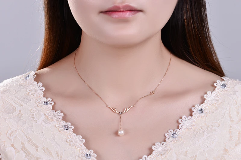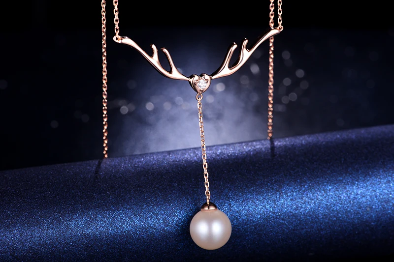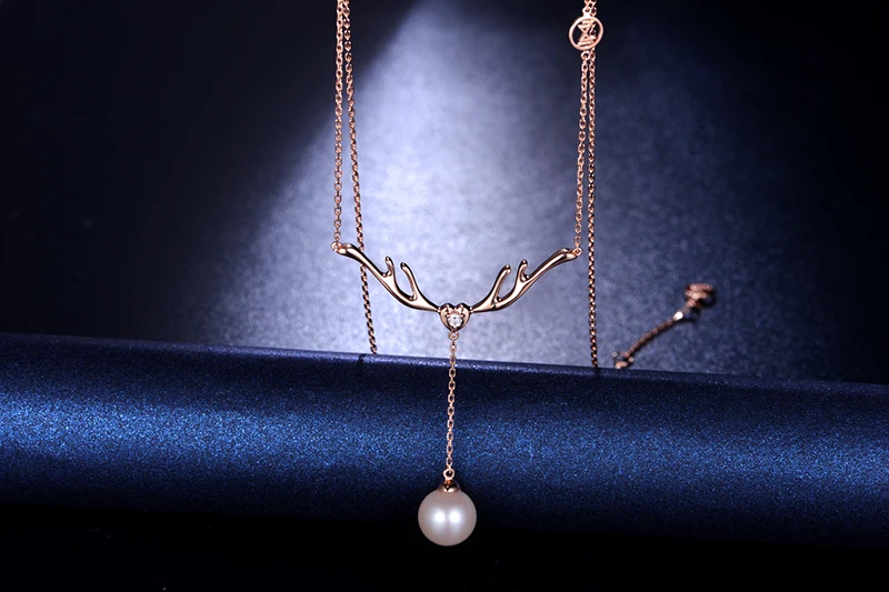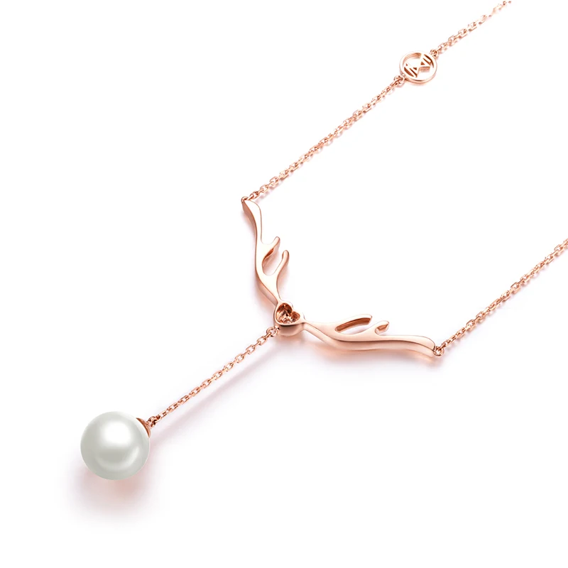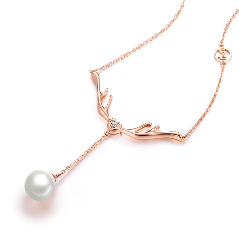 Choker The Christmas Reindeer Real 18K Rose Gold Real 0.03 CT Diamond White Pearl Necklace JBC00022