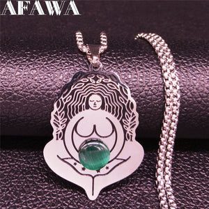 AFAWA Forest Goddess Stainless Steel Chain Necklace for Women Silver Color Statement Necklace Jewelry cadenas mujer N3323S02