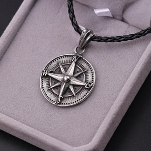 Collana con pendente a bussola tonda gotica per uomo Collana con talismano vintage punk rock Collana con amuleto nordico e rune