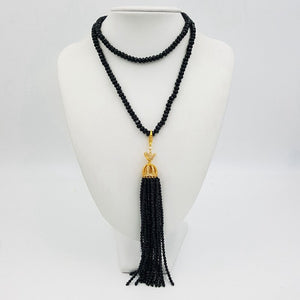 Natural Stone Black Agates Onyx Approx 4x6mm Abacus shape Faceted 80cm long necklace with Black Agates 3mm Facted beads Tassel