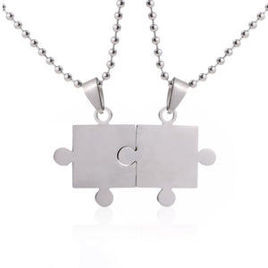 lover Paired Couple Pendants 60cm Necklace Stainless Steel Smooth Puzzle Necklaces for Lover Woman Man Collar Collier Polishing