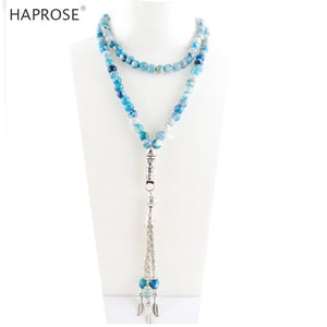 Preghiera di agata naturale al 100% islamica musulmana tasbih Allah Rosario braccialetti di agata strutturata blu 99 perline blu 6-10mm collana con nappa
