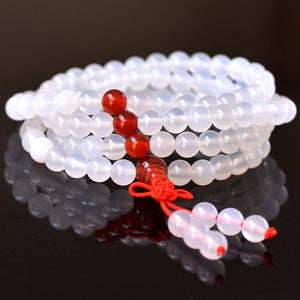 Natural 6mm White Agate beaded Bracelet Tibetan Buddhist 108 Prayer Beads Necklace Gourd Mala Prayer Bracelet for Meditation