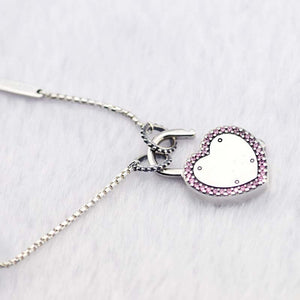 Collana con barra di cuori e pendente rotondo pendente Europa Collana con CZ trasparente da donna in argento sterling 925 per la moda femminile