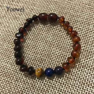 Baby Amber Teething Bracelet/Necklace Half Cherry Cognac Bead Natural Lapis Lazuli Original Stone Amber Jewelry Wholesale