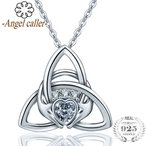 Collana con ciondolo Claddagh in argento sterling 925 Tiquetra Trinity Knot CZ Girocollo in cristallo Fine Jewelry per regalo di nozze