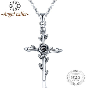 Collane con ciondolo a forma di croce con foglia di fiore di rosa in argento sterling 925 autentici per collari di gioielli in argento pregiato da donna