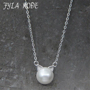 2017 Nuove orecchie di gatto 8mm Collana con ciondolo di perle di conchiglia 925-sterling-argento gioielleria raffinata per le donne FYS065