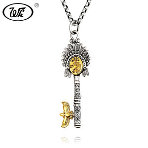 Collana con chiave etnica di design capo indiano in argento sterling 925 con chiavi vintage pendenti con collane gioielli tailandesi per le donne 4W NZ068