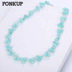 Natural Aquamarine Necklace Power Gem Bead Chain Trendy Women Jewellery Men Party Ornaments Clavicular Chain Double Layer