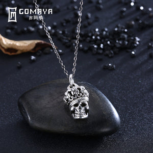 925 Sterling Silver Skeleton Pendant Necklace Charm Punk Style for Women Fine Jewelry Gift Classic European Vintage