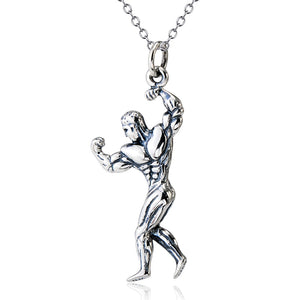 925 Sterling Silver Jewelry Pendant Necklace Bodybuilding Muscle Stong Men Sport Vigorous Graceful Male Choker Collier CHX9870