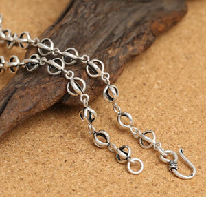 fine jewelry S925 sterling silver men's classic retro Thai silver 7m small lantern linked necklace.