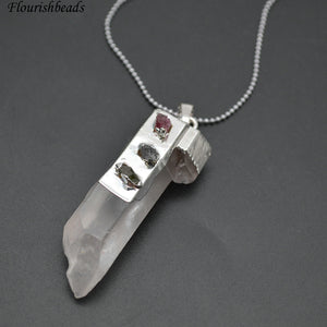 Paved Stone Chips Beads Natural Crystal Quartz Stone Pillar Pendant Necklace Fashion Jewerly