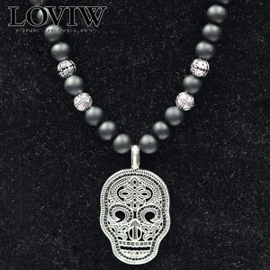 925 Sterling Silver fine Jewelry Chain pendant glowing Gothic wind Skull head bead chokers necklaces for Brother friend