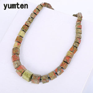 Unakite Men Necklace Charms Magnesite Square Diamond Original Statement Natural Stone Gemstone Power Crystal Fine Jewelry