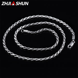 Vintage 925 Sterling Silver Necklaces Long Chains for Women Men Retro Italian Hemp Rope Necklace 60cm 55cm