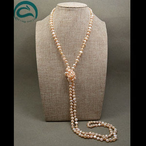150cm Long Pearl Jewellery,Natural Pink Color Baroque Pearl Necklace,Handmade 7-8mm Perfect Women Jewelry