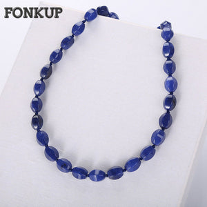 Forkup Lapis Lazuli Necklace Bead Stone Natural Chains Trendy Women Fine Jewellery Wedding Gioielli Geometric Rolo Chain Symbol