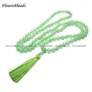 Natural 8mm Green Aventurine Jade 108 Stone Round Beads Tassel Pendant Kontted Mala Prayer Necklace