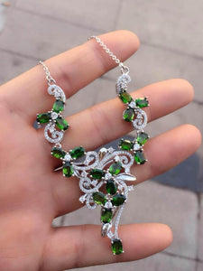 Natural green diopside Necklace Natural Gemstone Pendant Necklace S925 sliver women Luxury Flowers Leaves party fine Jewelry