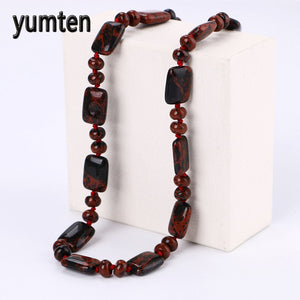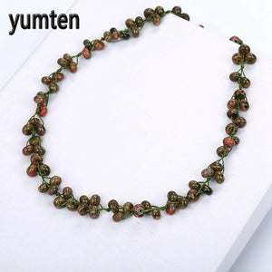 Unakite Braided Necklace Natural Stone Crystal Bead Chain Fashion Pendant Boutique Women Handmade Jewelry Amber Natural