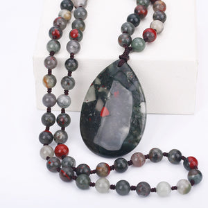 Natural Stone Blue Jade Crystal Necklace Water Drop Chocker Bohemia Maxi Diffuser Girls Necklace Bead Chain Women Jewelry Party