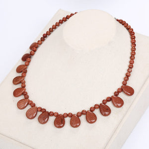 Natural Stone Goldstone Necklace Women Water Drop Party Fashion Crystal Fine Jewelry Wood Invisible Chain Best Friend Necklace