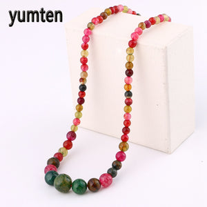 New Fashion 8-16mm Multicolor Agate Necklace 1pc Strand Hand-Knitted Faceted Dream18 Inches Crude Raw Crystal Necklace Handmade