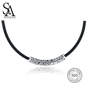 Collane girocollo in corda elastica nera in argento sterling 925. Collana girocollo in argento 925 con tubo vintage, collana per donna