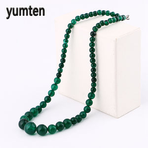 Trendy First Jewelry 6-14mm Stone Necklace High Grade Green Chalcedon Dark Green Agate Carnelian Roundy Bead Green Necklace