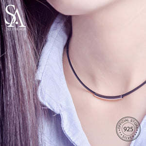 Collana girocollo in tubo di corda di pelle nera in argento sterling 925 Collana girocolli con ciondolo in argento 925 Collane per girocolli da donna