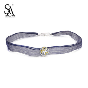 925 Sterling Silver Statement Necklace & Pendants Pink Gentel Choker Big Pendant Fine Jewelry for Women