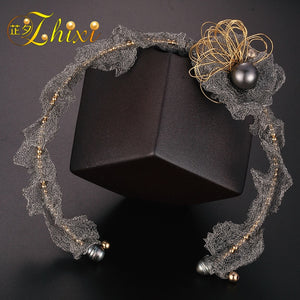 [NYMPH] Collana girocollo con perle nere di Tahiti per le donne Gioielleria raffinata Perle di mare naturali di lusso Torque 2018 Nuovo regalo per feste X322