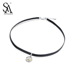 925 Sterling Silver Choker Necklaces for Women 2018 New Black Leather 18K Gold Charms AAA CZ Necklaces & Pendant